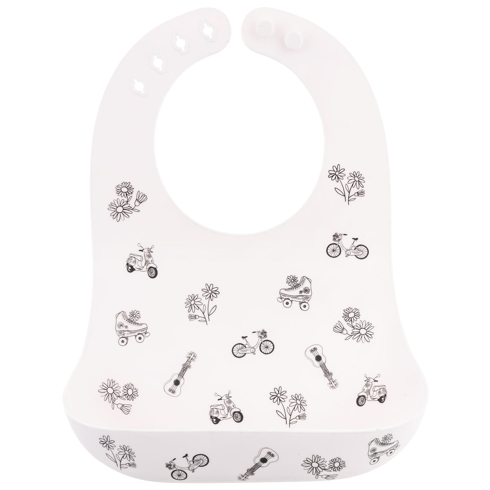 ALL OVER PRINT SILICONE BIB BLACK & WHITE